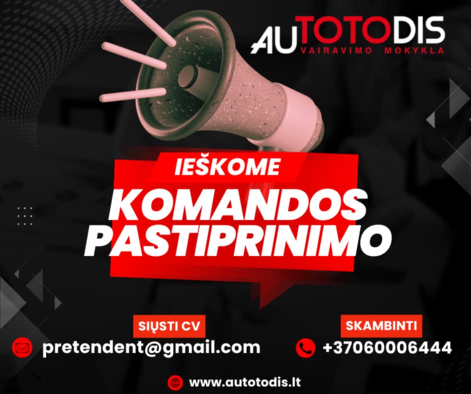 Kviečiame prisijungti atsakingą ir motyvuotą vairavimo instruktorių, turintį puikius bendravimo įgūdžius ir gebantį padėti mokiniams išmokti saugiai vairuoti.